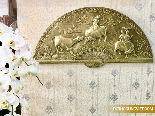 Tranh quạt đồng “Tiếng Sáo Quê” là một tác phẩm nghệ thuật độc đáo, kết hợp chất liệu đồng và hình ảnh truyền thống Việt Nam. Dòng tranh này thường được chế tác theo hình dáng quạt, mang đậm nét văn hóa và giá trị tinh thần, thể hiện sự mộc mạc, yên bình của làng quê Việt.