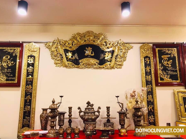 – Đỉnh đồng được đặt ở chính giữa bàn thờ đi kèm đôi hạc thờ và đôi chân nến được đặt đối xứng nhau. Phía trước đỉnh đồng sẽ là bát hương.