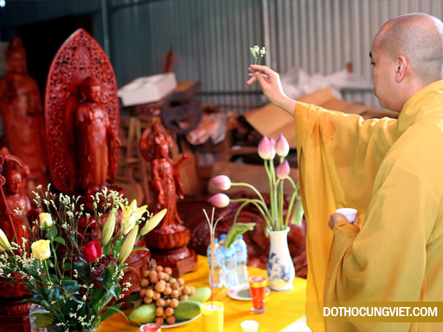 - Ngồi thật nghiêm nghị và nhìn thẳng lên bàn thờ Phật rồi đọc câu khấn vái tên họ của chủ nhân để cho phép khai nhãn linh vật phong thủy này và nói từng vật phẩm đó là gì.