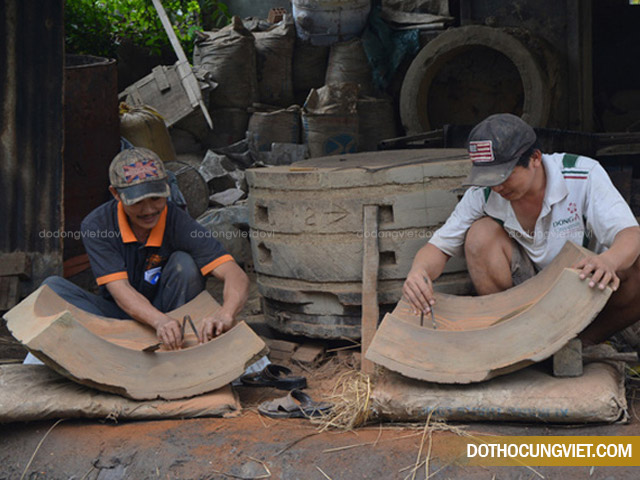 – Sau đó dùng đất bùn củ + chấu + bột chịu nhiệt làm cốt bên trong (gọi là làm thao).