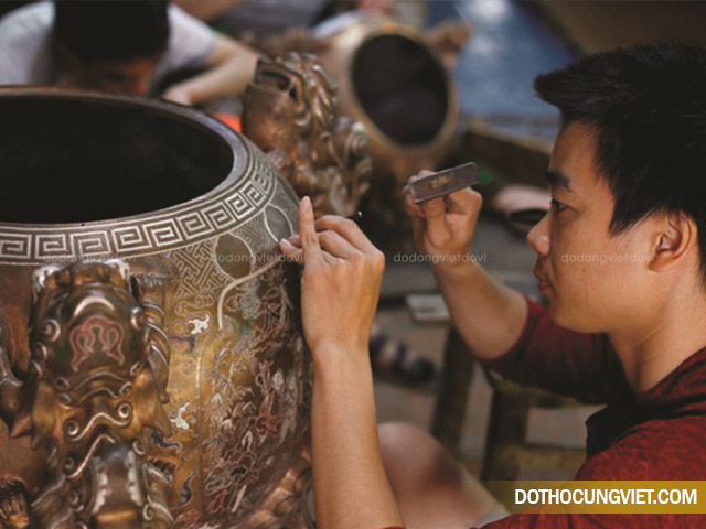 – Khi pha kim loại vào từng thành phẩm các nghệ nhân phải có kinh nghiệm pha chộn các hỗn hợp kim loại lại với nhau.