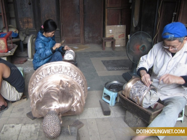 – Sau khi khuôn nguội, dỡ khuôn lấy sản phẩm ra mài, giũa, đục, tách, mà rũa theo mẫu và con mắt của nghệ nhân phải đồng sắc – đồng khí mới đạt yêu cầu kỹ thuật , nghệ thuật.
