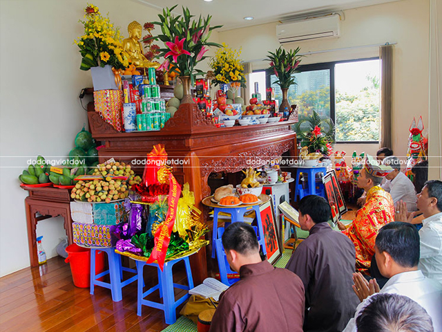 - Khi xe chuyển nhà tới thì bày các đồ cúng lên mâm ngay ngắn, chuẩn bị các đồ đạc sẵn sàng để tiến hành thủ tục cúng nhập trạch chuyển nhà mới.