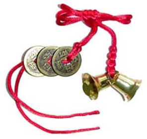 Xâu thành chùm với dây màu đỏ và treo ở các phương vị tài lộc.