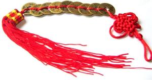 Xâu 8 đồng tiền xu phong thủy bằng chỉ màu đỏ treo bên trong cửa, tượng trưng cho tài lộc đã vào trong văn phòng của bạn.